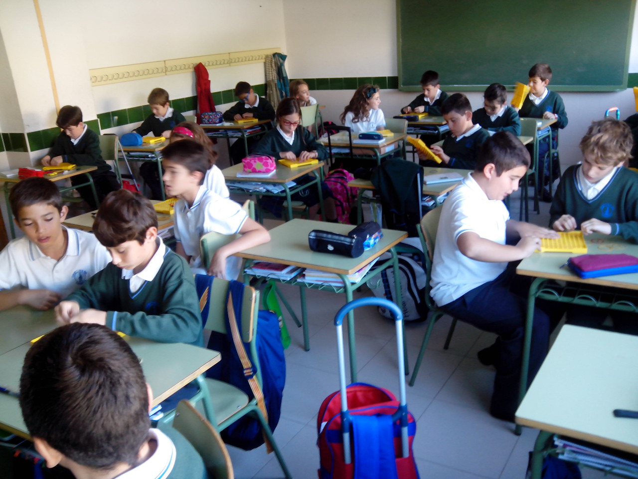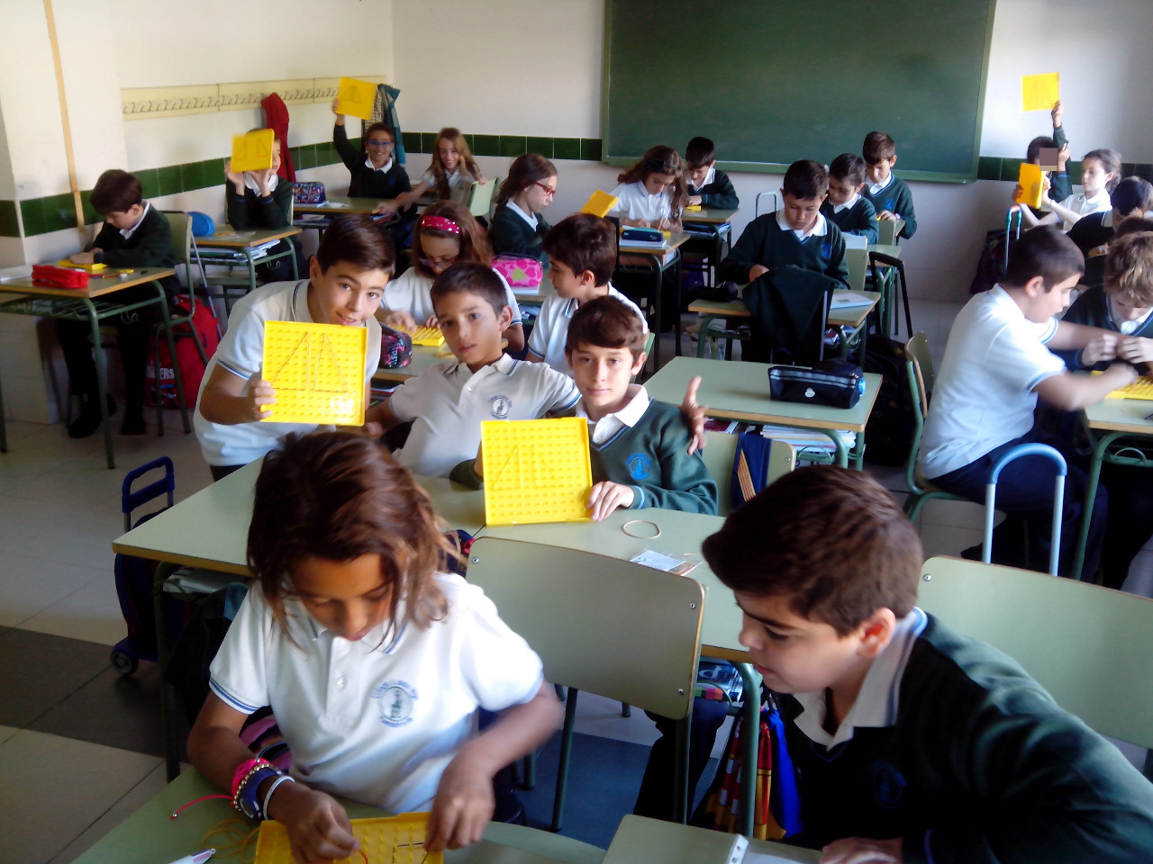 Con geoplanos, los alumnos de 5º hacen figuras y otros contenidos.
